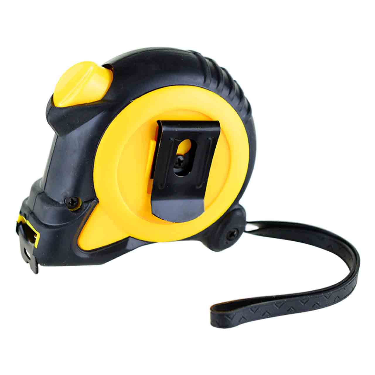 Измерительная рулетка на 3 метра оборудована силиконовым ремешком и специальным зажимом на задней панели, который позволяет фиксировать инструмент на поясе.