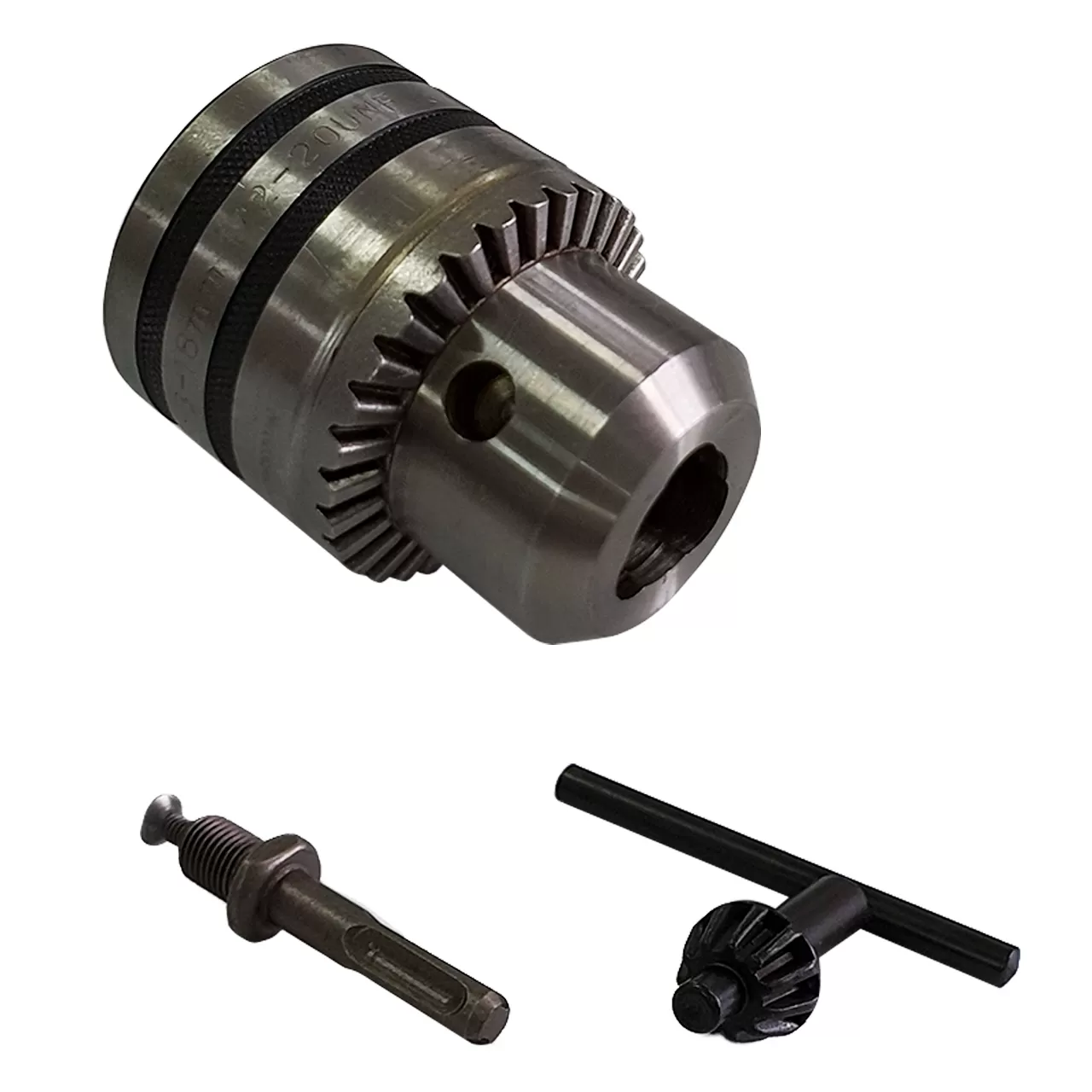 Патрон ключевой 16 мм с переходником SDS-plus имеет в комплекте т-образный ключ и предназначен для дрелей, шуруповертов и сверлильных станков. Патрон 16 мм служит для зажима сверла, венчика для миксера, шлифовальных абразивных дисков и других вспомогательных элементов в строительстве и ремонте. Ключ для патрона 1/2-20 UNF + адаптер надежно фиксируют насадки, замедляя износ венцов элемента зажима при высоких нагрузках.